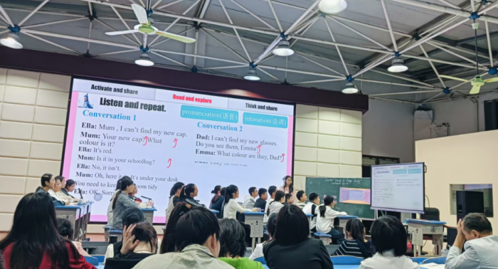下午,萧县新课程新教材研修团队的潘宁、陈小燕、吴婷婷、吴晓微、王田莉五位老师以七年级第四单元为例进行单元整体教学课例分享。分享团队从内容分析、学情分析、目标设定、活动规划及评价设计等方面,展示基于主题意义探究的单元整体教学设计,帮助与会教师理解新理念、落地新实践。
