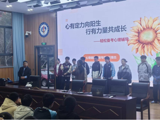 活动现场氛围轻松融洽,同学们在“木头人”游戏里练习专注与自控能力,在“成长四部曲”体验中学习接纳自我、勇于突破,在“向阳花儿开”互动中感受同伴支持,大家在轻松氛围中结合自身备考经历,围绕活动体验,畅谈感悟,梳理负面情绪,相互启发赋能。