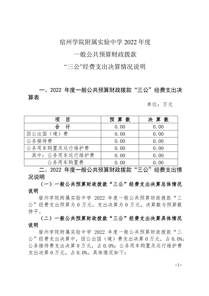 宿州学院附属实验中学2022年度三公经费支出决算公开 |