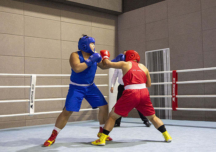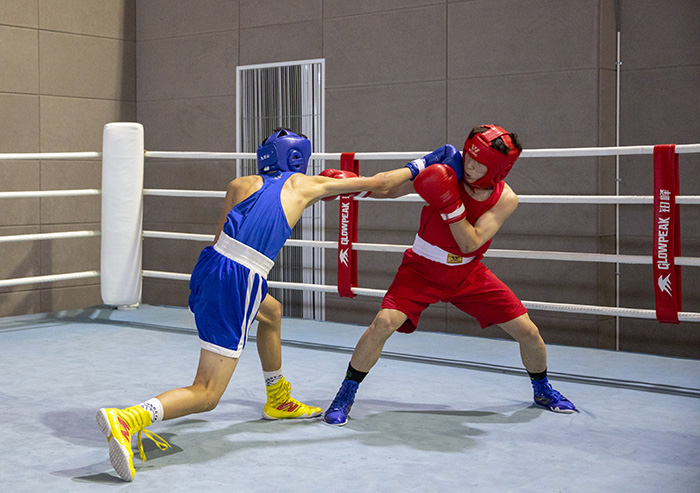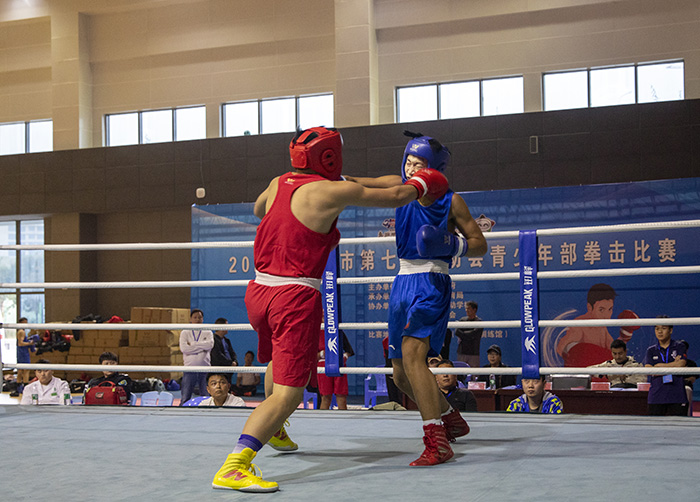 拳击作为斗智斗勇的竞技体育,是一项集健身防身于一体的综合性运动,双方进行体能、技术和心理的较量,被称为“智勇双全的运动”,能使人变得勇敢、自信、坚强,敢于面对挑战,勇于战胜困难。赛场上,“BOX!” 随着裁判的一声令下,红蓝双方运动员身着拳击服装、护具,纷纷拿出看家本领,直拳、勾拳、摆拳,“拳”力出击,力求一击制胜;出拳快准、步伐灵活、躲闪迅速,灵活的走位、勇猛的进攻、快速的攻防、变化的拳法,激情演绎着力量与速度的较量,意志与技巧的拼搏,体能与智慧的比拼,场面激烈刺激,现场掌声不断,呼声此起彼伏。