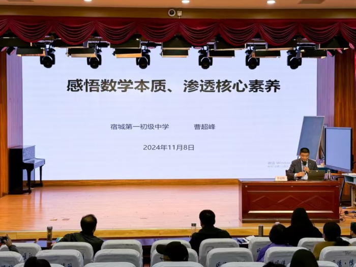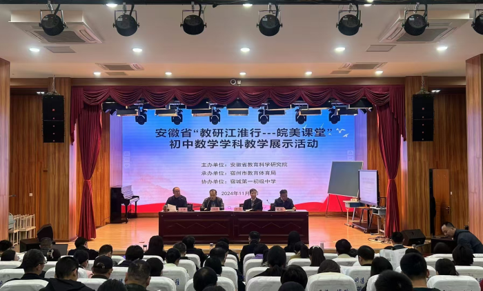 11月8日,2024年安徽省“教研江淮行-皖美课堂”初中数学学科教学展示活动在宿城第一初级中学校本部举行,来自全省16个市初中数学教研员、教学一线骨干教师280余人参加了活动。