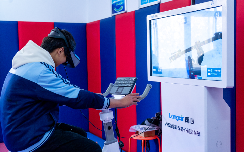 走进位于宿城第一初级中学内的宿州市未成年人心理健康辅导中心,多个班级的学生正开展着心理健康辅导活动,学生们有的在VR动感单车身心调适系统上进行沉浸式运动,有的在情绪宣泄室在老师带领下面对充气人进行搏击动作的训练和实践。据介绍,宿州市未成年人心理健康辅导中心在今年已完成100余万人次师生心理测评,将“体心融合”理念从临时性活动提升至常态化课程并通过教研活动推动课程落地,系统性地推动体育运动与心理健康教育深度融合,构建出“以体强心”的创新模式。
