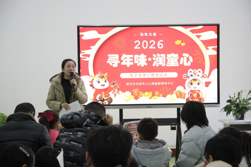 1月3日下午,“寻年味・润童心”亲子非遗心理游园会在宿州市未成年人心理健康辅导中心成功举办,30多组家庭参与。