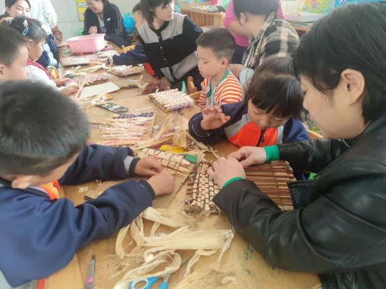 幼儿园里,玉米棒、玉米苞叶、玉米秸秆、农作物秸秆、花生皮,这些在农村常见的东西,成了大家上课用的校本资源。展开天马行空的想象力,雕刻、粘贴、插接、编织各种手法齐上阵,家长和孩子们积极踊跃参与亲子手工制作活动!有的孩子在家长的帮助下,给玉米芯换上了彩色的新装,给玉米棒编上小辫子,贴上小眼睛,设计出可爱的衣服,小小的玉米变身成可爱的玉米娃娃;有的孩子利用小巧手,让玉米棒在“长”出了长长的鹿角,变成了可爱的长颈鹿;有的孩子和家长一起,“一针一线”制作出了趣味玉米苞叶编织;还有的孩子把各种各样的农作物叶子粘贴在纸板上,制作成独一无二的小面具……整个幼儿园里一片热火朝天的场景,大人和孩子都玩得津津有味。