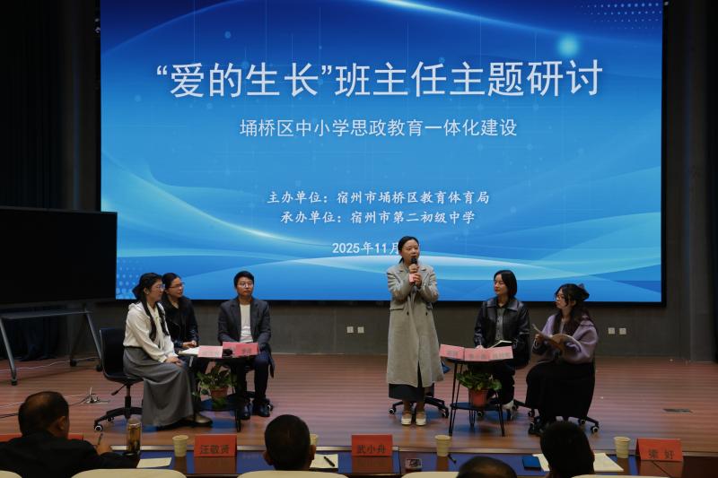 11月7日,埇桥区“爱的生长”中小学思政教育一体化建设暨班主任工作交流研讨活动在宿州市第二初级中学人民路校区举行。区教体局相关负责人、各校德育负责人及班主任代表等200余人参加。