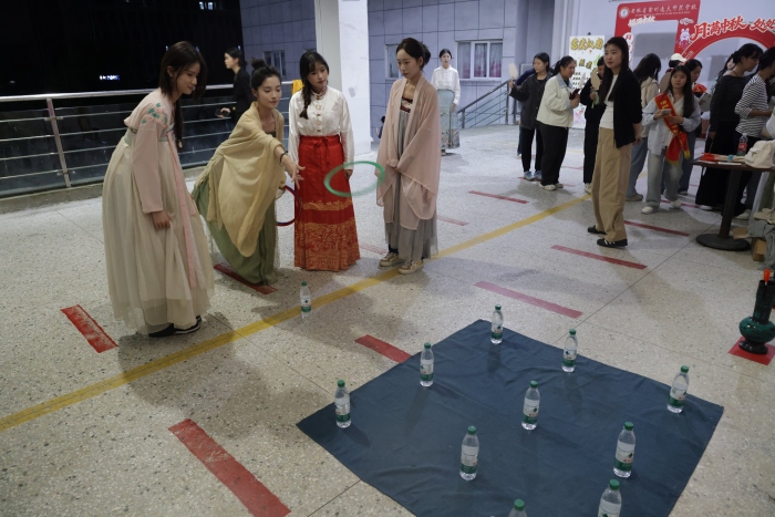 游园会现场处处洋溢着浓郁的节日气息与汉韵风情。投壶区前,同学们屏气凝神,抬手投箭,古韵十足;套圈摊位旁,欢呼声此起彼伏;猜灯谜区域更是人头攒动,师生们驻足思索、相互探讨,在解谜过程中感受汉字的精妙与传统文化的魅力。每完成一项趣味挑战,同学们便能收获一枚独具特色的活动印章,集齐印章后,可兑换承载着学校暖心祝福的中秋礼品,小小的印章与礼品,让节日的喜悦愈发浓厚。