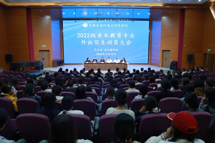 为深化美术教育专业实践教学,提升学生艺术感知与创作能力,10月10日,宿州逸夫师范学校召开2022级美术教育专业外出写生动员大会。校党委书记丁明前,党委副书记、校长贾伟伟,纪委书记、副校长何光明,教研室主任孟明,艺术系主任郑永建及全体写生师生共同参会。