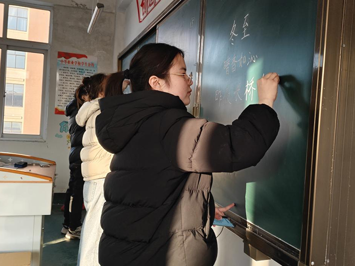 大赛聚焦教学实践核心,设置教学设计、板书展示、无生授课三大关键考核环节,全方位检验青年教师的专业素养与教学功底。教学设计环节,教师们紧扣课程标准,融入创新教学理念,凸显学情适配性;板书展示中,工整字迹、清晰逻辑延续了前期书写培训成效,尽显教学基本功;无生授课时,教师们以精准演示、精炼表达传递重难点,展现出扎实的课堂把控能力。