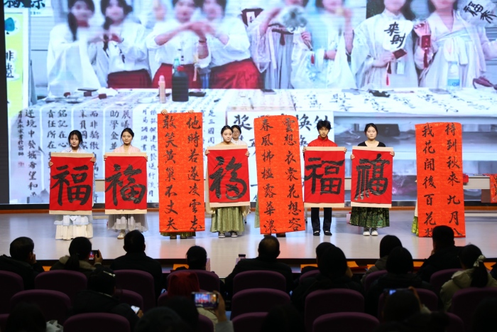 汇演以舞蹈社活力四射的《Like Jennie》拉开帷幕,节目精彩纷呈、形式多样。戏剧社小品《反诈联盟》幽默寓教,播音主持班朗诵《两岸》倾诉家国情怀,国乐社《浮光》勾勒东方意境,青志社手势舞《大梦想家》传递爱与力量,模特社走秀尽显朝气,舞蹈《春嬉》舞动春日生机,汉服社情景剧、非遗社非遗秀融合历史传统,书法社国粹表演彰显翰墨神韵。