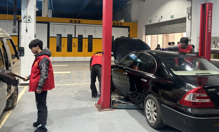 活动中,志愿者们分工明确、热情高涨,有序开展三项志愿服务活动。在校园停车场,他们自带工具为老师洗车、检测轮胎气压,细致擦拭车身,并及时提醒胎压异常情况,用贴心服务赢得老师们的一致好评。在食堂,志愿者协助食堂工作人员收拾餐具、清理餐桌,同时引导同学们主动将餐具送至收残台,传递文明就餐理念。此外,他们还聚焦校园卫生死角,手持工具清扫墙角、绿化带等区域,用辛勤劳动美化校园环境。