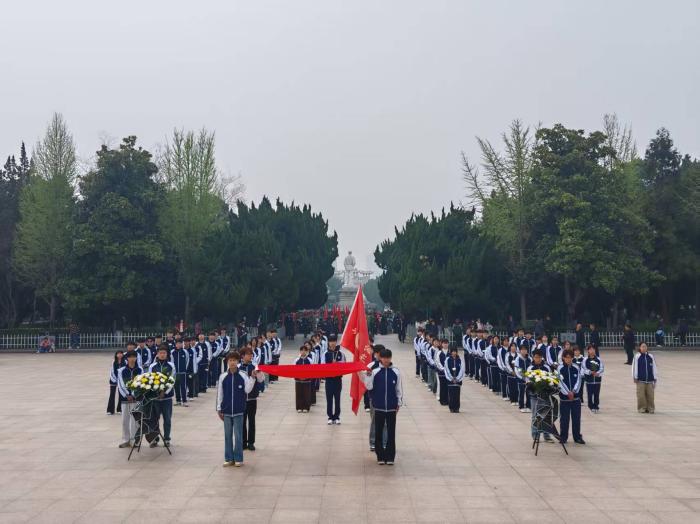学生代表刘佳佳结合自身,抒发爱国情怀,号召全体同学铭记历史、以先烈为榜样,勤学技能、砥砺品格。全体学生面向团旗,高举右拳重温入团誓词,铿锵誓言彰显新时代青年的理想信念与责任担当。活动最后,全体师生有序瞻仰纪念碑、祭扫烈士墓,追忆先烈峥嵘事迹。