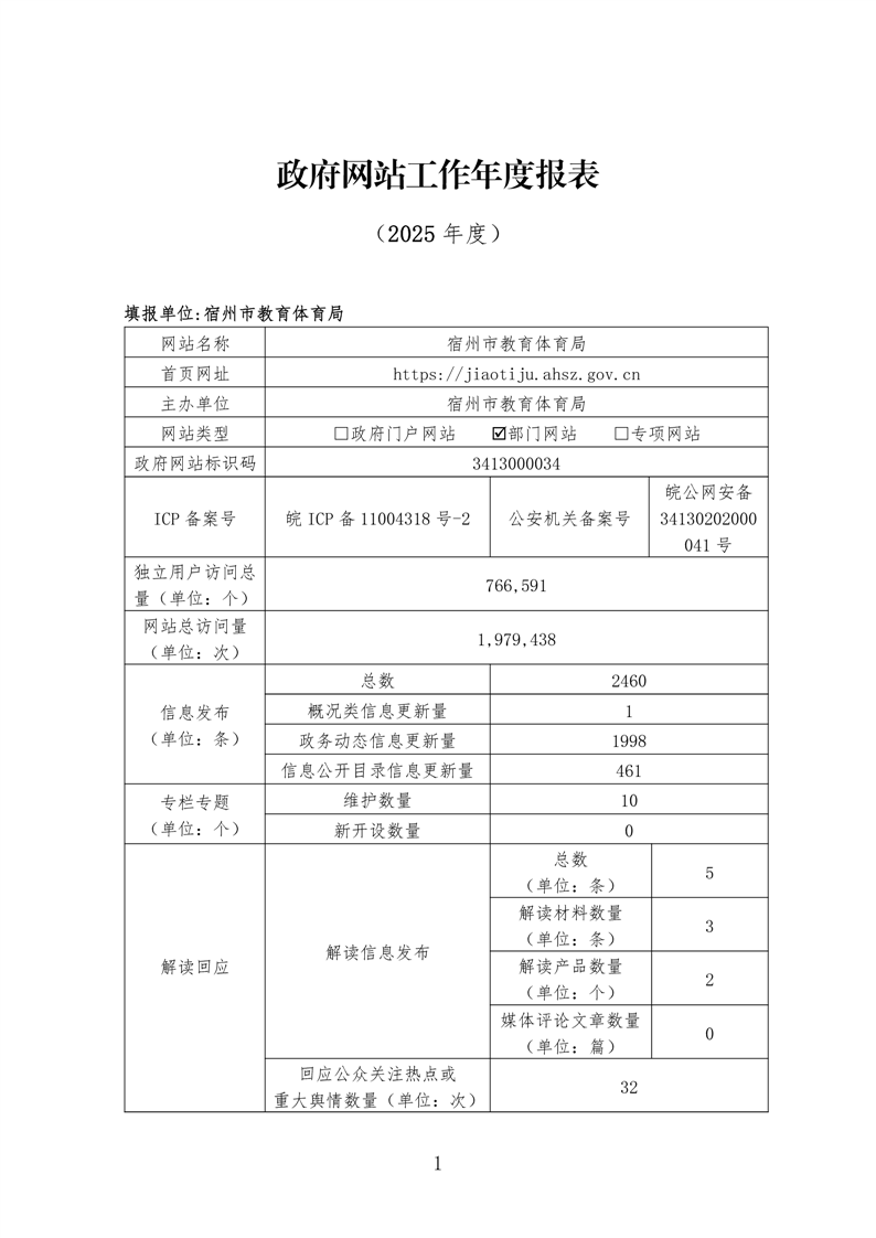 宿州市教育体育局2025年度政府网站工作报表.doc