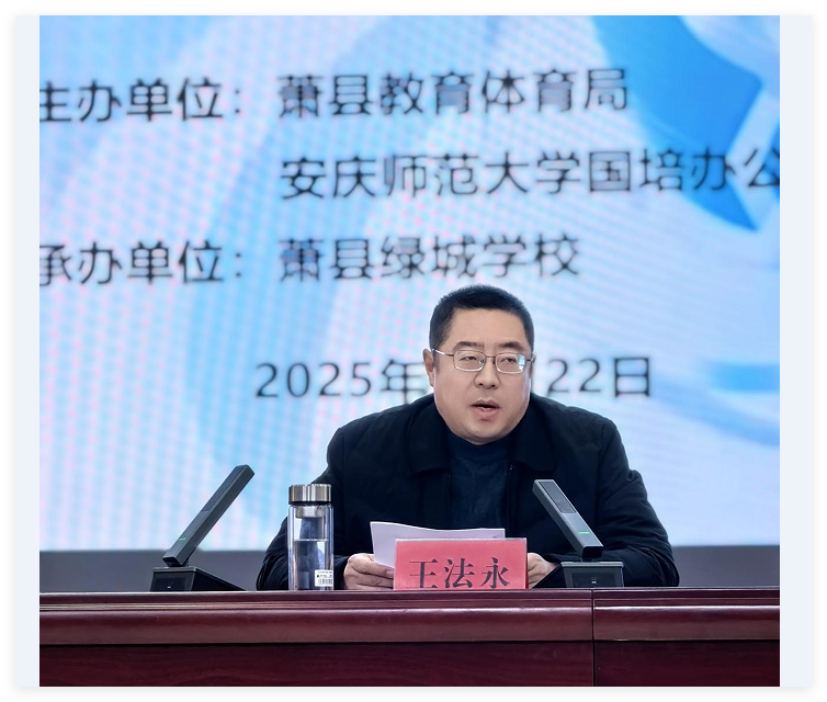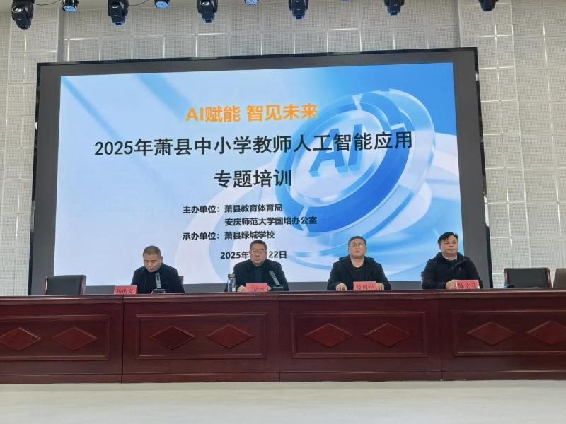 2025年11月22日,“2025年萧县中小学教师人工智能应用专题培训”在萧县绿城学校初中部成功举办。本次培训由萧县教育体育局与安庆师范大学国培办公室联合主办,严格对标《安徽省中小学人工智能通识教育课程纲要(2025年版)》的核心要求,确立了“提升教师AI技术与学科教学深度融合能力”的核心目标。培训通过专业指导与实践分享相结合的形式,致力于赋能教师专业成长,推动萧县教育数字化转型进程。全县中小学各学科骨干教师,以及“‘国培计划’一对一精准帮扶培训”项目学员共计400余人参与培训,共同探索数字化教学新路径。县委教育工委委员、县政府教育督学王法永,安庆师范大学数理学院副院长殷周平、院长助理陈文兵等嘉宾出席活动。