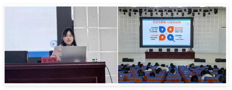 华东师范大学博士研究生、合肥经开区教研员刘立杰率先开启本次培训的首场讲座《AIGC在教育教学中的应用》,内容兼具政策高度与实践指导性,引发参训教师强烈共鸣。